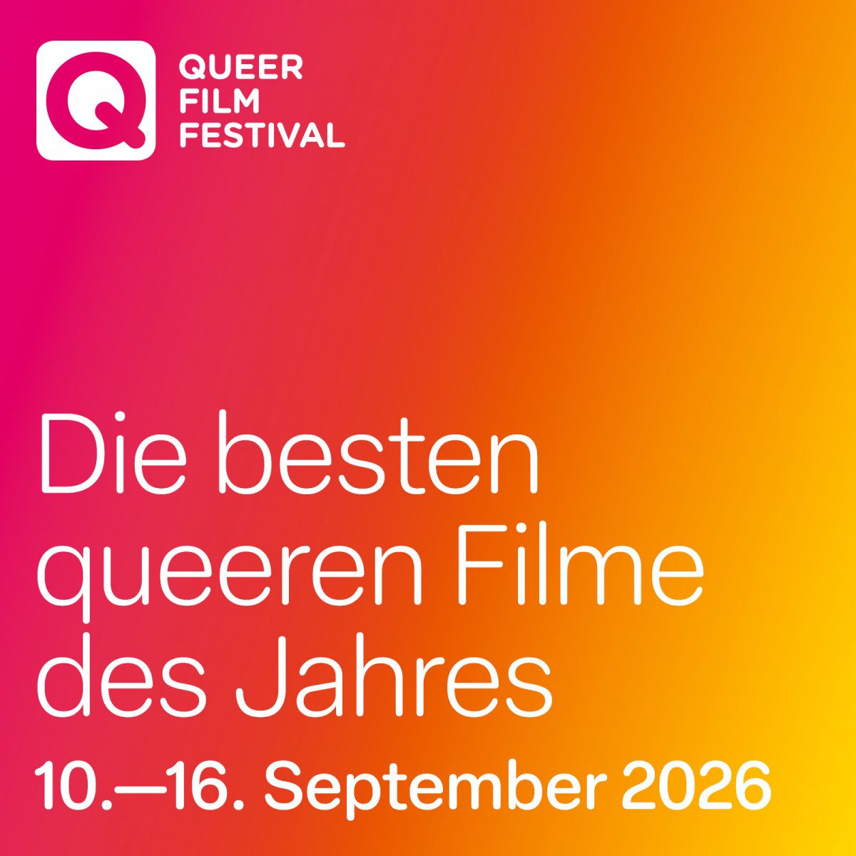 Das achte Queerfilmfestival naht und verspricht eine rauschende Festivalwoche in elf Städten gleichzeitig. Feiert mit uns die ganze Bandbreite des internationalen queeren Kinos: vom 10. bis zum 16. September 2026! Das Programm geben wir im Sommer bekannt. Wir freuen uns sehr!